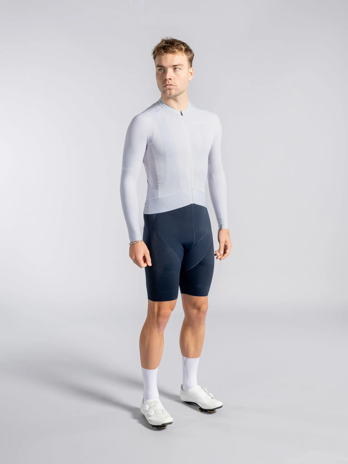 • Kitsa lõikega jalgrattasõidulõige, pikendatud seljaosa ja pikad varrukad
